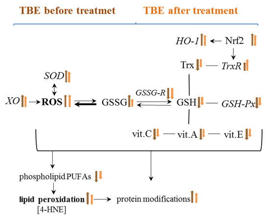 Therefore, in order to broaden the knowledge of the pathophysiological consequences of TBEV infection and bacterial co-infections (B. burgdorferi and A. phagocytophilum), the aim of this study is to evaluate the severity of redox imbalance and its consequences for phospholipids and proteins necessary for the physiological functioning of the body. The results of this study also take into account the metabolic response of the organism after treatment and the resolution of clinical symptoms.
