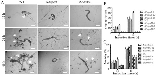 2.7. AoPdeH and AoPdeL Regulate Trap Formation and Nematicidal Activity