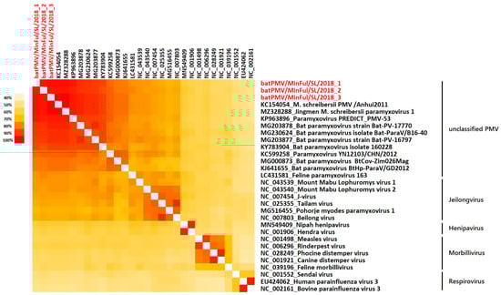 - Noh, J.Y.; Jeong, D.G.; Yoon, S.W.; Kim, J.H.; Choi, Y.G.; Kang, S.Y.; Kim, H.K. Isolation and characterization of novel bat paramyxovirus B16-40 potentially belonging to the proposed genus Shaanvirus. Sci. Rep. 2018, 8, 12533. [Google Scholar] [CrossRef]