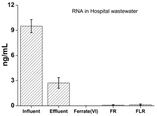 The following are available online at https://www.mdpi.com/article/10.3390/pathogens11040450/s1, Figure S1: Elimination of RNA fragments from hospital effluent wastewater by ferrate (VI), Fenton reaction, and Fenton-like reaction; y axis in logarithmic scale for better visibility.