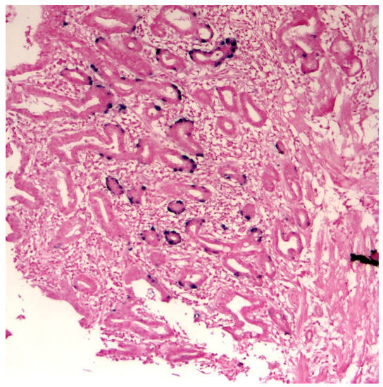 - Sarbia, M.; Zur Hausen, A.; Feith, M.; Geddert, H.; Von Rahden, B.H.A.; Langer, R.; Von Weyhern, C.; Siewert, J.R.; Höfler, H.; Stein, H.J. Esophageal (Barrett’s) adenocarcinoma is not associated with Epstein-Barr virus infection: An analysis of 162 cases. Int. J. Cancer 2005, 117, 698–700. [Google Scholar] [CrossRef]