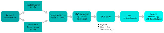- Bankur, P.K.; Nayak, A.; Bhat, K.; Bankur, R.; Naik, R.; Rajpoot, N. Comparison of culture and polymerase chain reaction techniques in the identification of Tannerella forsythia in periodontal health and disease, an in vitro study. J. Indian Soc. Periodontol. 2014, 18, 155–160. [Google Scholar] [CrossRef] [PubMed]