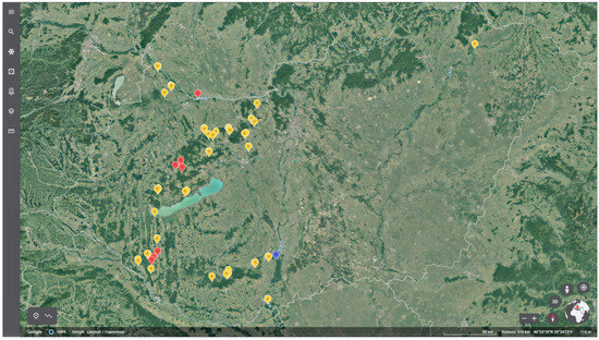 Detection of A. pleuropneumoniae from wild boars in Hungary (red: PCR positive; blue: PCR and culture positive; yellow: PCR negative).