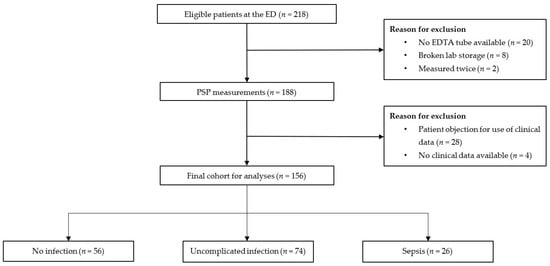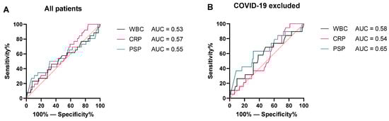 - García De Guadiana-Romualdo, L.; Jiménez-Santos, E.; Cerezuela-Fuentes, P.; Español-Morales, I.; Berger, M.; Esteban-Torrella, P.; Hernando-Holgado, A.; Albaladejo-Otón, M.D. Analyzing the Capability of PSP, PCT and SCD25 to Support the Diagnosis of Infection in Cancer Patients with Febrile Neutropenia. Clin. Chem. Lab. Med. 2019, 57, 540–548. [Google Scholar] [CrossRef]