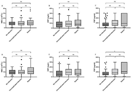 - Nargis, W.; Ahamed, B.; Ibrahim, M. Procalcitonin versus C-Reactive Protein: Usefulness as Biomarker of Sepsis in ICU Patient. Int. J. Crit. Illn. Inj. Sci. 2014, 4, 195. [Google Scholar] [CrossRef] [Green Version]