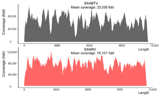 Coverage and sequencing depth of the SXABTV and SXARV genome.