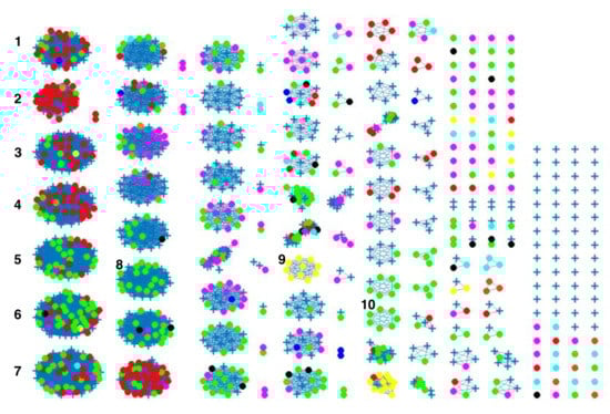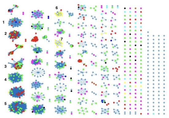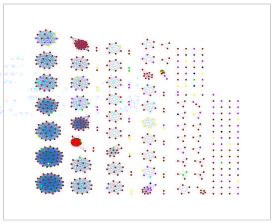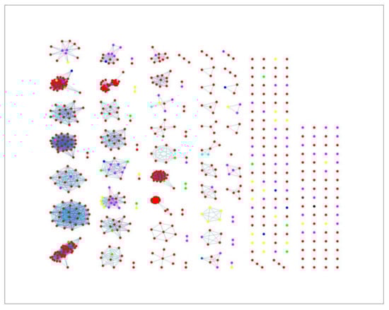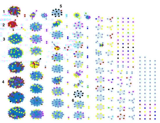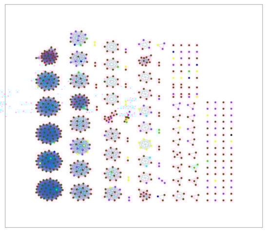 - Fruchterman, T.; Reingold, E. Graph drawing by force-directed placement. Soft. Prac. Exp. 1991, 21, 1129–1164. [Google Scholar] [CrossRef]