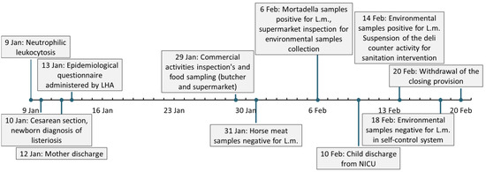 After the correct sanitation of premises, sampling performed in self-control and by the local health authority tested negative. Consequently, the deli counter activity was reopened, according to current legislation. The contamination of mortadella was most likely secondary, since the sampled product was already open and no data relating to an intact package of the same batch were available.