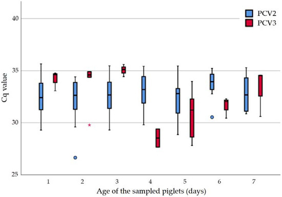 Eddicks, M.; Maurer, R.; Deffner, P.; Eddicks, L.; Sipos, W.; Reese, S.; Cvjetković, V.; Krejci, R.; Opriessnig, T.; Ritzmann, M.; et al. Cross-Sectional Study on the Prevalence of PCV Types 2 and 3 DNA in Suckling Piglets Compared to Grow–Finish Pigs in Downstream Production. Pathogens 2022, 11, 671. https://doi.org/10.3390/pathogens11060671