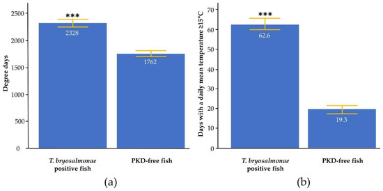 - De Kinkelin, P.; Loriot, B. A water temperature regime which prevents the occurrence of proliferative kidney disease (PKD) in rainbow trout, Oncorhynchus mykiss (Walbaum). J. Fish Dis. 2001, 24, 489–493. [Google Scholar] [CrossRef]