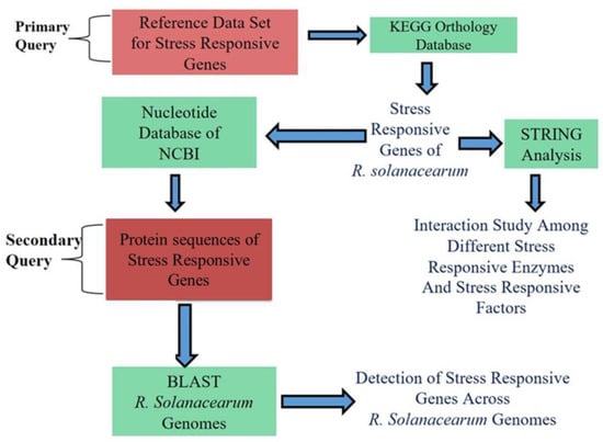 Completely assembled and annotated genomes (as of 31 March 2022) of Rs were downloaded either from the NCBI genome database (https://www.ncbi.nlm.nih.gov/genome) (accessed on 31 March 2022) or from the KEGG genome database (https://www.genome.jp/kegg/genome) (accessed on 31 March 2022), which includes 110 genomes (Table S4). Sequences of stress-responsive enzymes and stress regulators were retrieved from the UniPort database.