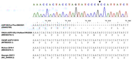 Hien, N.D.; Nguyen, L.T.; Hoang, L.T.; Bich, N.N.; Quyen, T.M.; Isoda, N.; Sakoda, Y. First Report of a Complete Genome Sequence of a Variant African Swine Fever Virus in the Mekong Delta, Vietnam. Pathogens 2022, 11, 797. https://doi.org/10.3390/pathogens11070797