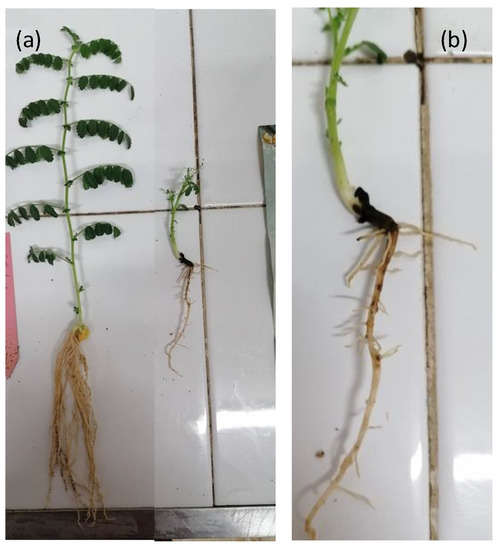 - Lakhran, L.; Ahir, R.R.; Choudhary, M.; Choudhary, S. Isolation, purification, identification and pathogenicity of Macrophomina phaseolina (Tassi) goid caused dry root rot of chickpea. J. Pharmacogn. Phytochem. 2018, 7, 3314–3317. [Google Scholar]