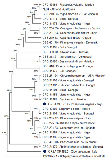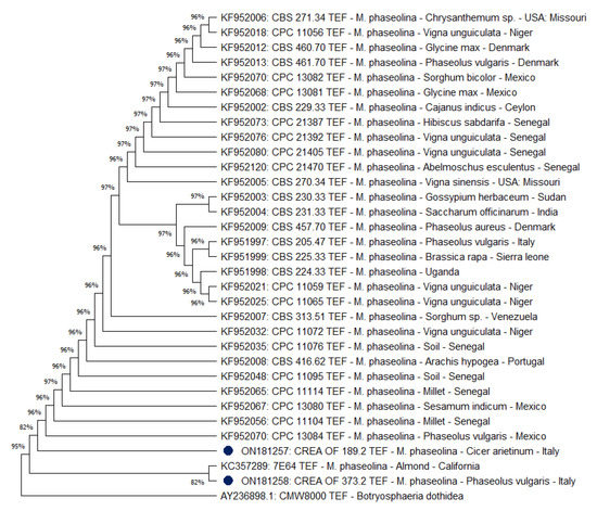 2.5. Phylogenetic Analysis of M. phaseolina CREA OF 189.2 Isolate