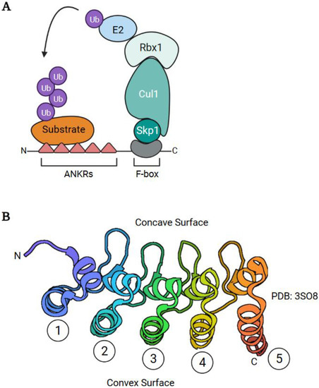 - Kane, E.I.; Spratt, D.E. Structural Insights into Ankyrin Repeat-Containing Proteins and Their Influence in Ubiquitylation. Int. J. Mol. Sci. 2021, 22, 609. [Google Scholar] [CrossRef] [PubMed]
