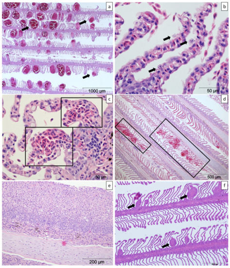 - Adams, M.B.; Nowak, B.F. Amoebic gill disease: Sequential pathology in cultured Atlantic salmon, Salmo salar L. J. Fish Dis. 2003, 26, 601–614. [Google Scholar] [CrossRef] [PubMed]