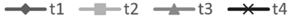 represent treatment times of 30 s, 1, 2.5, and 5 min, respectively.