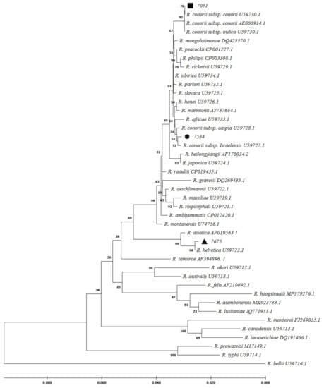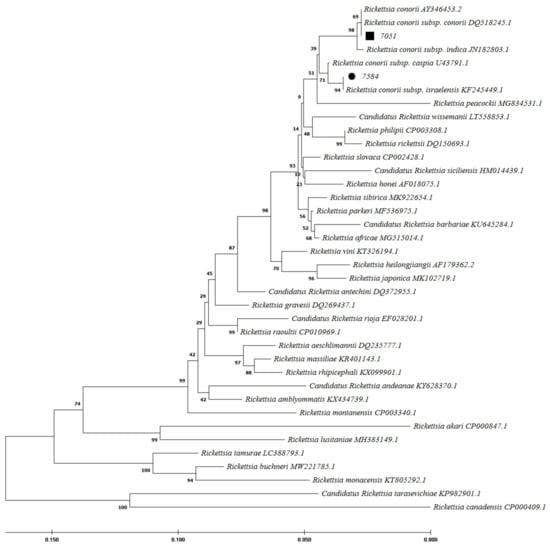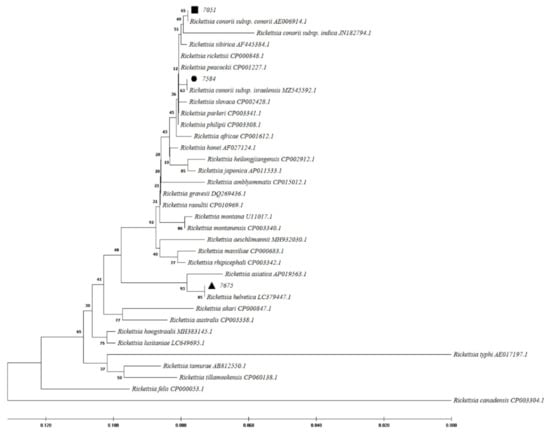 7051, and 7675 were the samples studied in this study and aligned closely to Rickettsia