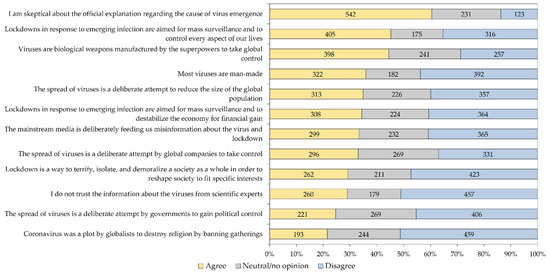 3.5. Attitude towards Conspiratorial Beliefs Regarding Emergence of Virus Infections