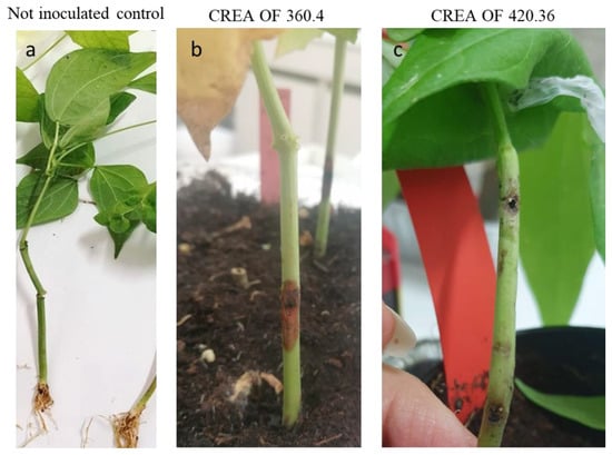 3.3. Evaluation of the Transmissibility of B. dothidea CREA OF 360.4 and D. mutila CREA OF 420.36 in P. vulgaris from Seeds to Plantlets