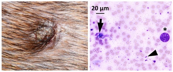 - Legnani, S.; Pantchev, N.; Forlani, A.; Zini, E.; Schares, G.; Balzer, J.; Roccabianca, P.; Ferri, F.; Zanna, G. Emergence of cutaneous neosporosis in a dog receiving immunosuppressive therapy: Molecular identification and management. Vet. Dermatol. 2016, 27, 49-e14. [Google Scholar] [CrossRef]