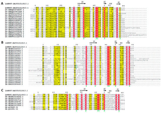2.1. The LhKNOT Sequence Shows Similarity to Insect and Plant Antimicrobial Peptides