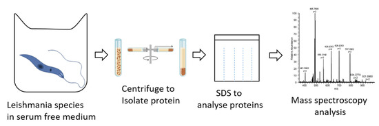 - Veras, P.; Bezerra de Menezes, J. Using Proteomics to Understand How Leishmania Parasites Survive inside the Host and Establish Infection. Int. J. Mol. Sci. 2016, 17, 1270. [Google Scholar] [CrossRef]