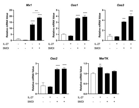 3.5. Innate Antiviral-like Responses Are Amplified by Recombinant IL-27