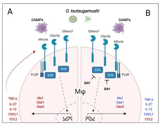 3.1. Syk Inhibition Reduces Expression of Mincle and Clec5a during O. tsutsugamushi Infection