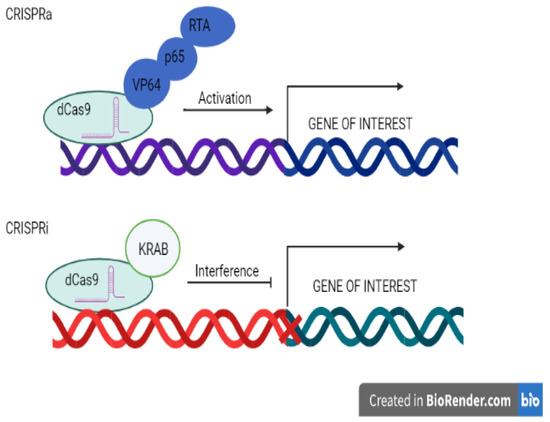 - Larson, M.H.; Gilbert, L.A.; Wang, X.; Lim, W.A.; Weissman, J.S.; Qi, L.S. CRISPR Interference (CRISPRi) for Sequence-Specific Control of Gene Expression. Nat. Protoc. 2013, 8, 2180–2196. [Google Scholar] [CrossRef] [PubMed]