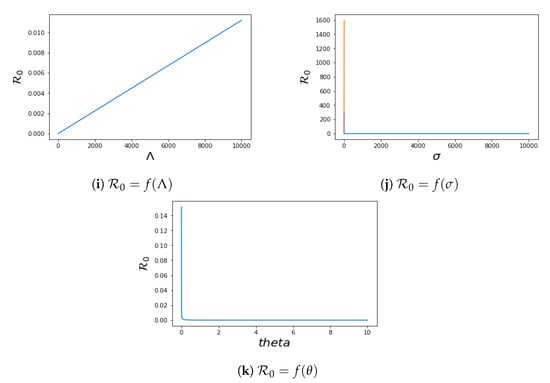We have the plot of in terms of their different parameters in Figure 6. The values of other parameters used for plotting while fixing the parameter that is plotted against for each plot are taken from Table 2.