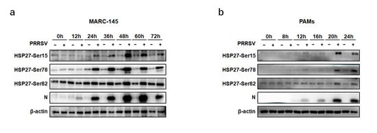 3.3. HSP27 Is Phosphorylated during PRRSV Infection