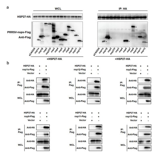 3.5. HSP27 Can Interact with Multiple PRRSV-nsps