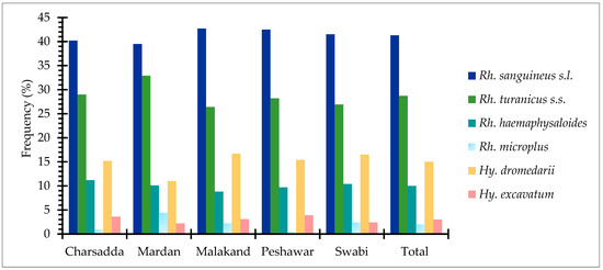 Chicago/Turabian StyleZeb, Jehan, Baolin Song, Haytham Senbill, Muhammad Umair Aziz, Sabir Hussain, Munsif Ali Khan, Ishtiaq Qadri, Alejandro Cabezas-Cruz, José de la Fuente, and Olivier Andre Sparagano. 2023. "Ticks Infesting Dogs in Khyber Pakhtunkhwa, Pakistan: Detailed Epidemiological and Molecular Report" Pathogens 12, no. 1: 98. https://doi.org/10.3390/pathogens12010098
