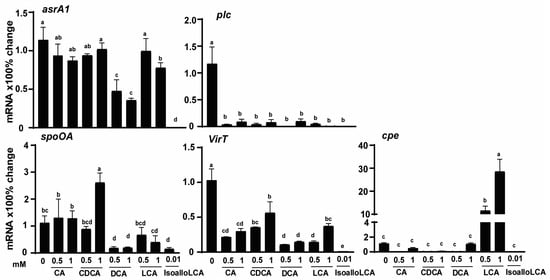 APA StyleAlenezi, T., Fu, Y., Alrubaye, B., Alanazi, T., Almansour, A., Wang, H., & Sun, X. (2023). Potent Bile Acid Microbial Metabolites Modulate Clostridium perfringens Virulence. Pathogens, 12(10), 1202. https://doi.org/10.3390/pathogens12101202