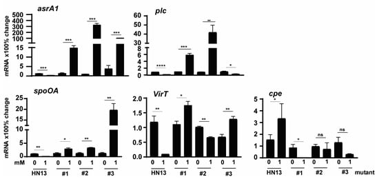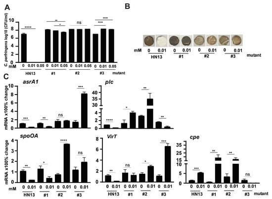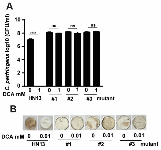 3.5. C. perfringens HN13 Mutants Express Virulence Genes in the Presence of DCA