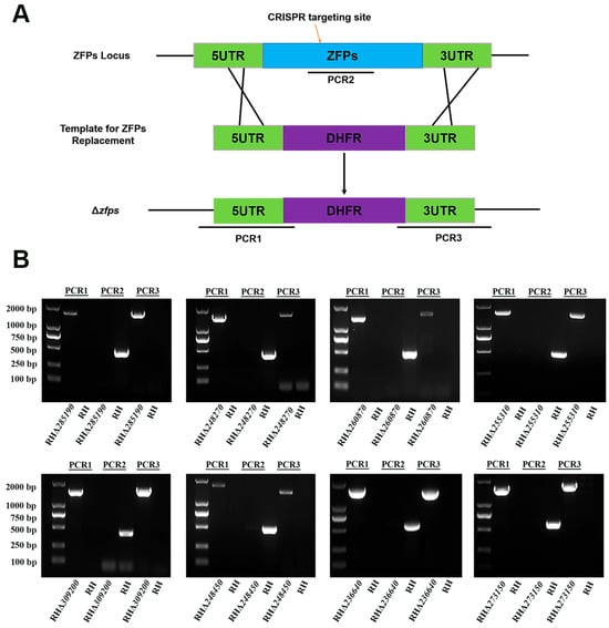 3.3. Successful Deletion and Identification of ZFPs in the T. gondii Type I RH Strain