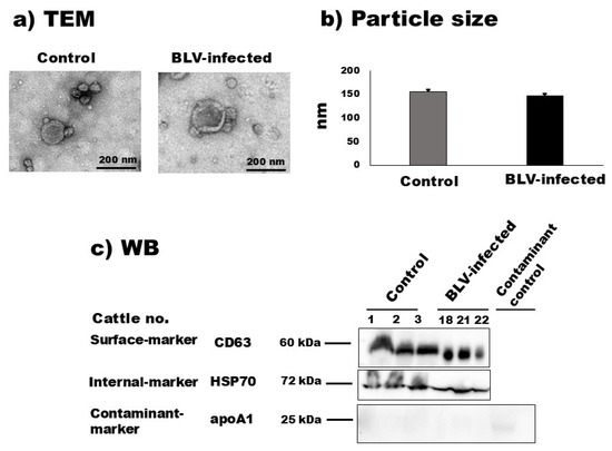 - Rahman, M.M.; Takashima, S.; Kamatari, Y.O.; Badr, Y.; Kitamura, Y.; Shimizu, K.; Okada, A.; Inoshima, Y. Proteomic profiling of milk small extracellular vesicles from bovine leukemia virus-infected cattle. Sci. Rep. 2021, 11, 2951. [Google Scholar] [CrossRef]