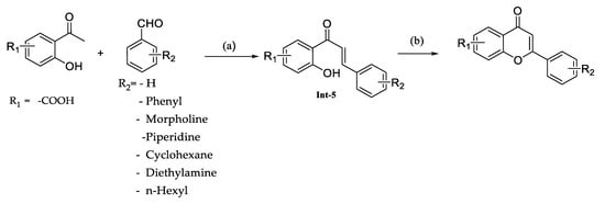 The reaction involved the condensation of substituted acetophenones with aldehydes using an inorganic base such as KOH in ethanol and resulted in the formation of intermediate-5. Subsequently, these intermediates underwent cyclization with iodine as a catalyst to produce the desired compounds (Scheme 2,Table 2).