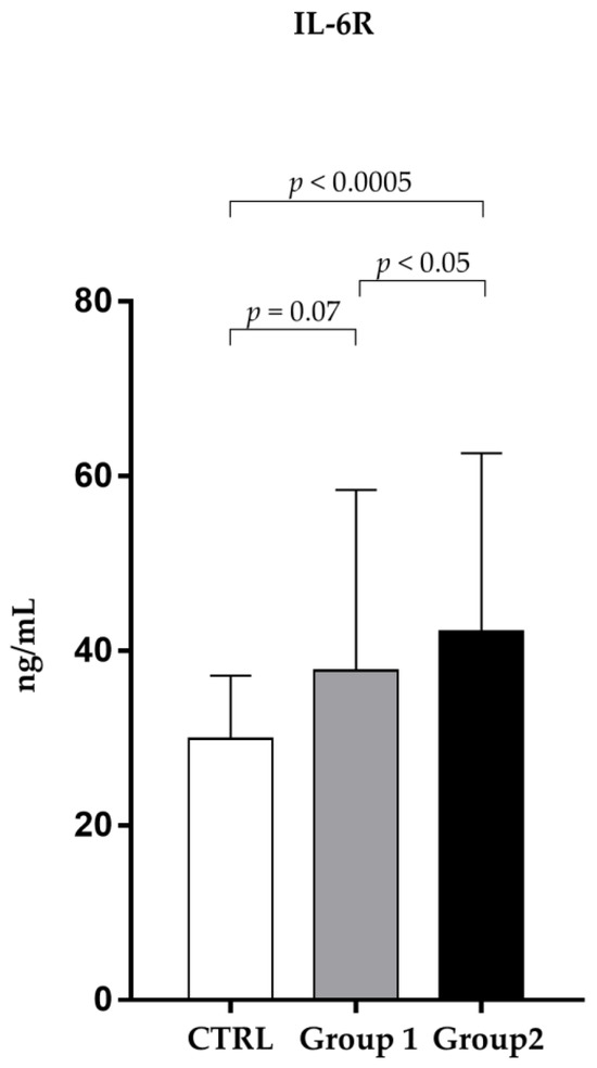 In addition, sIL-6R in patients (39.71 ± 17.87 ng/mL) was significantly (p < 0.005) higher (about 1.3 fold) than the control group (30.01 ± 7.68 ng/mL).