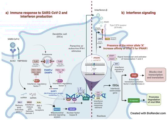 The IFN signaling pathway shows the relevance of this mechanism in regulating immune response during viral infections; however, viruses have mechanisms of IFN pathway evasion, and SARS-CoV-2 is no exception []. In addition to the already-known risk factors for COVID-19, genetic variants contribute to the severe disease [].