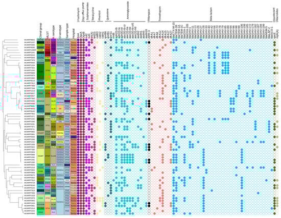 The following supporting information can be downloaded at https://www.mdpi.com/article/10.3390/pathogens12111334/s1, Table S1: metadata of the n = 69 isolates considered in this study, Table S2: antibiotic susceptibility of the isolates.