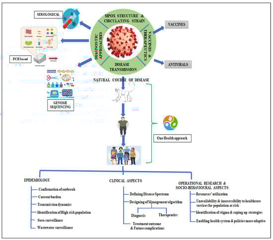- Epidemiology: This category encompasses the understanding of virus transmission dynamics, the integration of the One Health approach, the examination of social and behavioral factors associated with Mpox, improved serosurveys, and the implementation of community and wastewater surveillance systems.