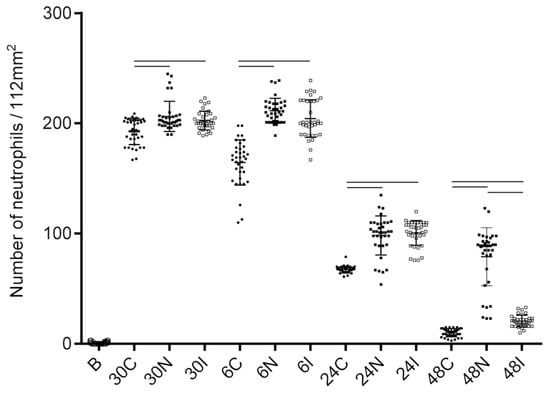 MC and neutrophil counts were analyzed using repeated measures ANOVA running Tukey’s test. The statistical analysis was done using Graph Pad Prism 7.0 (Dotmatics, San Diego, CA, USA).