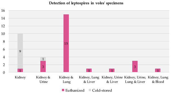 Presence of infection across specimens in voles testing positive for Leptospira via RT-PCR.