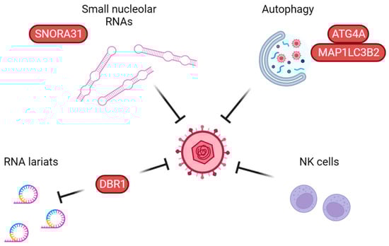 4.2. Intrinsic Defenses: SNORA31 and DBR1