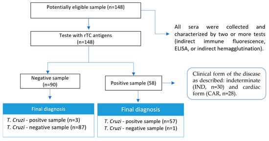 Study design. Only a sample of the group of patients with the cardiac form did not react to the assay using rTC as an antigen. Clinical forms of the disease classified according to Rocha et al. [].