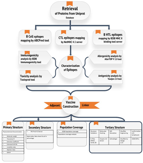 - Oli, A.N.; Obialor, W.O.; Ifeanyichukwu, M.O.; Odimegwu, D.C.; Okoyeh, J.N.; Emechebe, G.O.; Adejumo, S.A.; Ibeanu, G.C. Immunoinformatics and Vaccine Development: An Overview. ImmunoTargets Ther. 2020, 9, 13–30. [Google Scholar] [CrossRef]