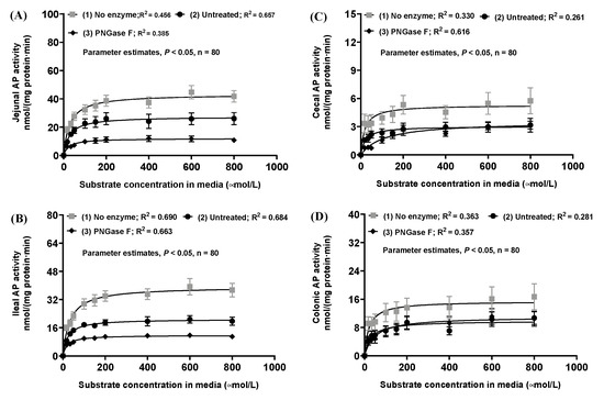 2.4. The Approach-2-the Role of N-Glycosylation in Modulation of AP Isoform Kinetics along the Weaned Porcine Intestinal Longitudinal Axis