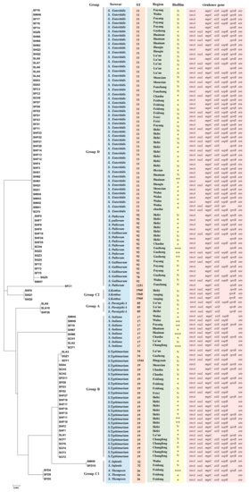 - Zhang, D.; Zhuang, L.; Wang, C.; Zhang, P.; Zhang, T.; Shao, H.; Han, X.; Gong, J. Virulence gene distribution of Salmonella Pullorum isolates recovered from chickens in China (1953–2015). Avian Dis. 2018, 62, 431–436. [Google Scholar] [CrossRef] [PubMed]